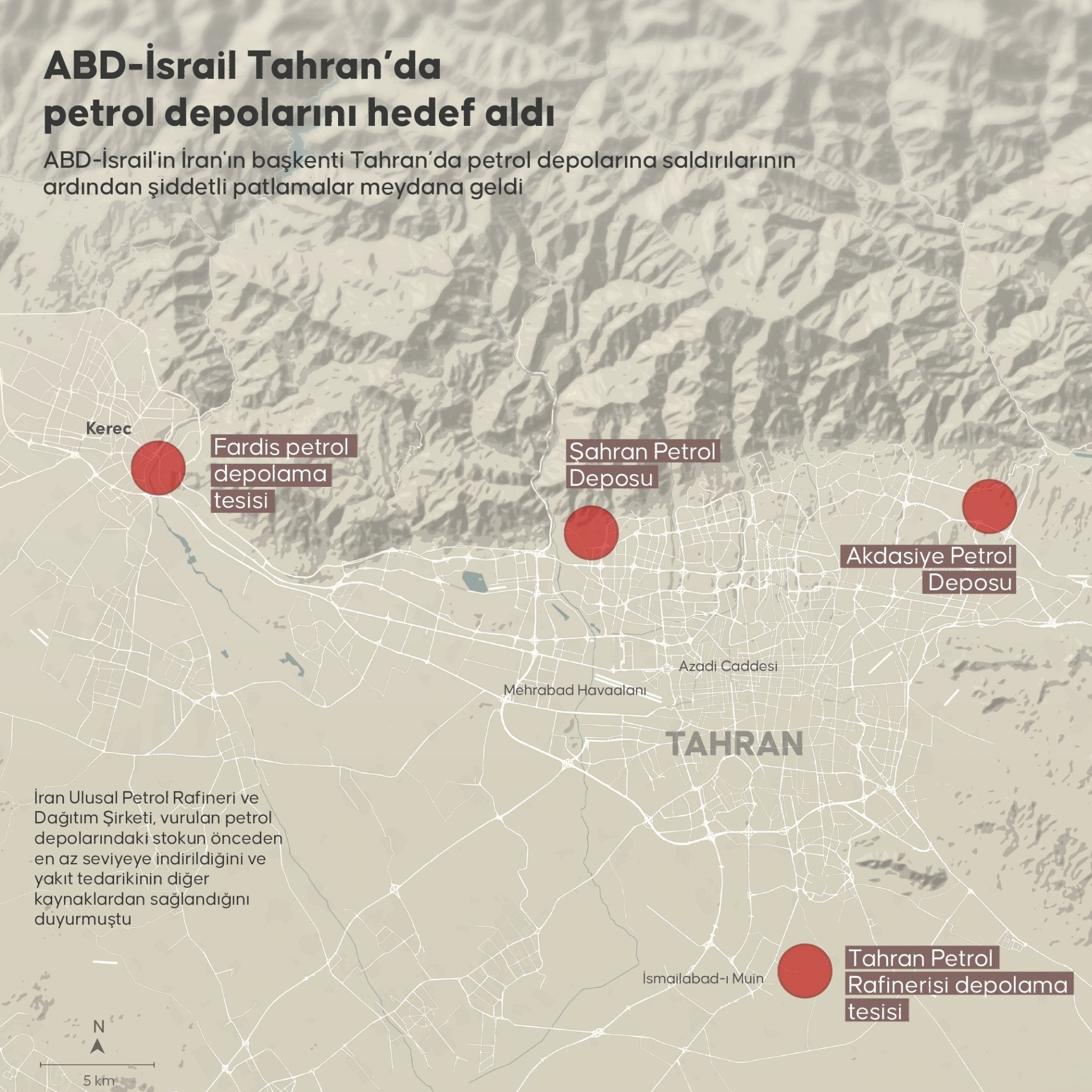 Ulusal İran Petrol Rafineri ve Dağıtım Şirketi, yaptığı açıklamada, ABD ve İsrail rejiminin Cumartesi gecesi geç saatlerde İran'ın altyapısına yönelik saldırılarının bir parçası olarak Tahran ve Elburz illerindeki petrol depolarına füze saldırıları düzenlediğini belirtti.