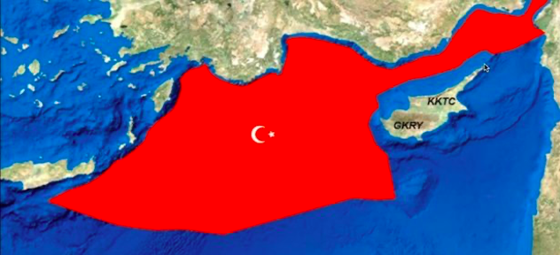 Bunlardan birini fikir vermesi açısından aşağıda sunuyorum. Bu haritanın bir özelliği de Doğu (Suriye) ve Batı (Yunanistan, Libya) tarafında herhangi bir sınıra yer vermemesidir.