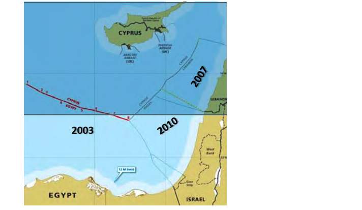 Güney Kıbrıs Rum Yönetimi (GKRY) ile Mısır arasında deniz alanlarının sınırlarının belirlenmesi için müzakerelerin başladığının duyulmasıyla birlikte Türkiye de harekete geçerek, Mısır nezdinde, Akdeniz’de ortay hat perspektifi üzerinde zemin yoklamıştı. Ancak bu girişimler somut bir somut vermemiş sonuçta GKRY – Mısır deniz alanlarını sınırlandırma (delimitation) anlaşması 2003 yılında imzalanmıştı.