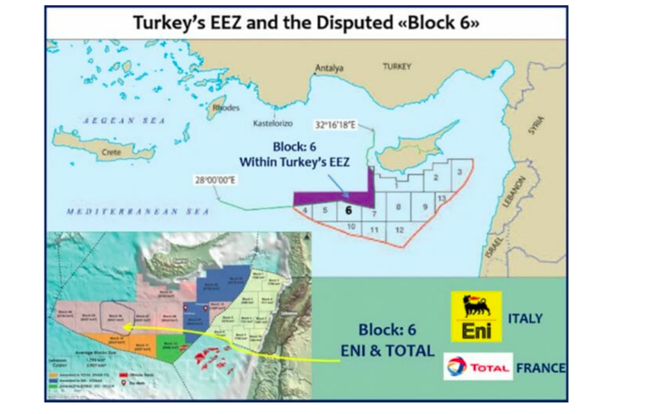 Türkiye ise Şubat 2018’de ENİ’ye ait bir sondaj gemisinin çalışmalarını engelledikten sonra, AB’nden ve ABD’nden gelen uyarı görünümlü tehdit ve göstermelik yaptırım kararları sonrasında aşamalı olarak bölgedeki güç gösterilerini azaltmış ve sondaj gemilerini Doğu Akdeniz’den çekmiştir.