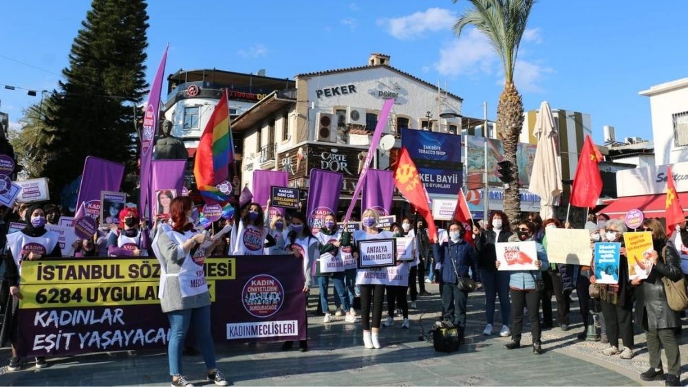 Antalya ve Konya'da kadınlar İstanbul Sözleşmesi için sokağa çıktı