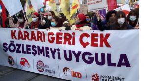 Yapılan açıklamada ‘’Kadın düşmanı AKP’nin kararlarına boyun eğmeyeceğiz, ülkenin dört bir yanında mücadeleye devam edeceğiz. Oldu bittiyle verdiğin kararı geri çek, İstanbul Sözleşmesi’ni uygula. Eşit ve özgür bir ülke kadınların ellerinde yükselecek" denildi.