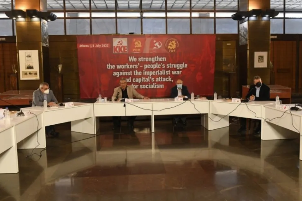 Türkiye Komünist Partisi (TKP), Yunanistan Komünist Partisi (KKE), İspanya Komünist İşçi Partisi (PCTE) ve Meksika Komünist Partisi (PCM) temsilcilerinin üst düzey katılımıyla KKE Genel Merkezi’nde “İşçi ve halk mücadelesini, emperyalist savaşa ve sermaye sınıfının saldırılarına karşı sosyalizm için yükseltiyoruz” konulu bir toplantı yapıldı.