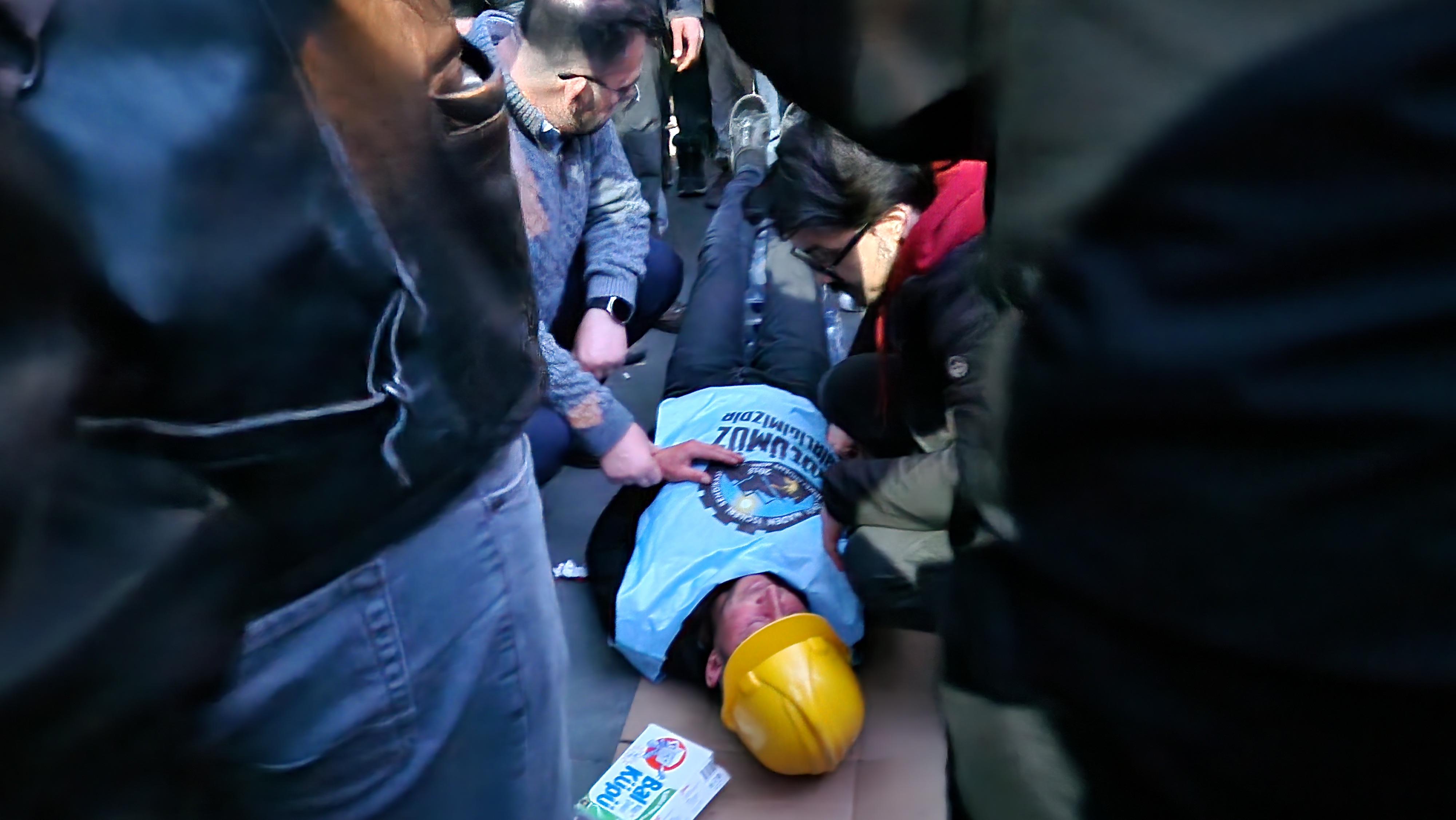 Bu akşamki basın açıklaması sırasında işçilerden biri daha fenalaştı.