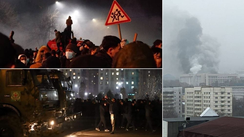 Bugün eylemciler ülkenin en büyük kenti Almatı'da bulunan Cumhurbaşkanlığı Konutu'nu basarak ateşe verdi. Dumanlar kentin birçok noktasından görülürken yetkililer kentte olağanüstü hâl (OHAL) ilan etti.