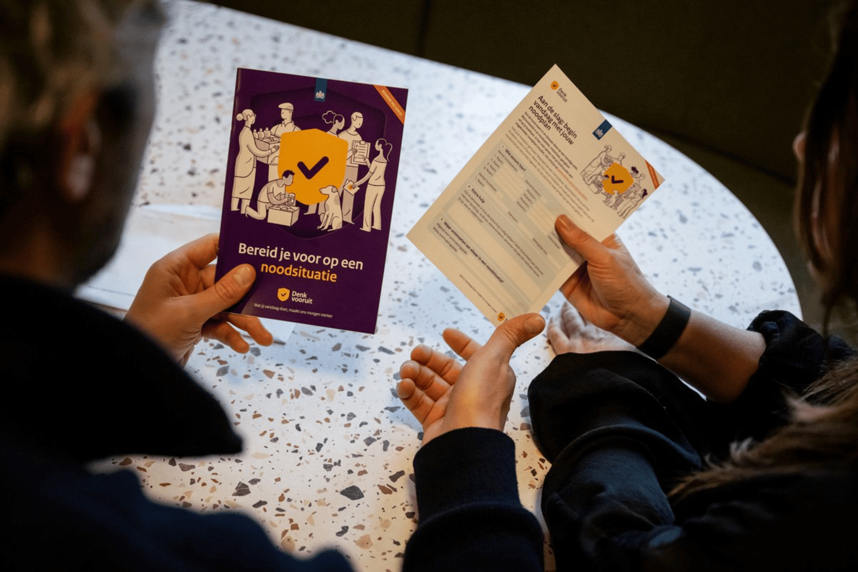İçinde kalın, sarı–mor kapaklı, özenle tasarlanmış bir broşür vardı. “Gönderdik, göndereceğiz” derken işte gelmişti. Üzerinde bakanlık logosu, “denk vooruit / ileriyi düşün” sloganı, içeride infografikler ve tik işaretli listeler…