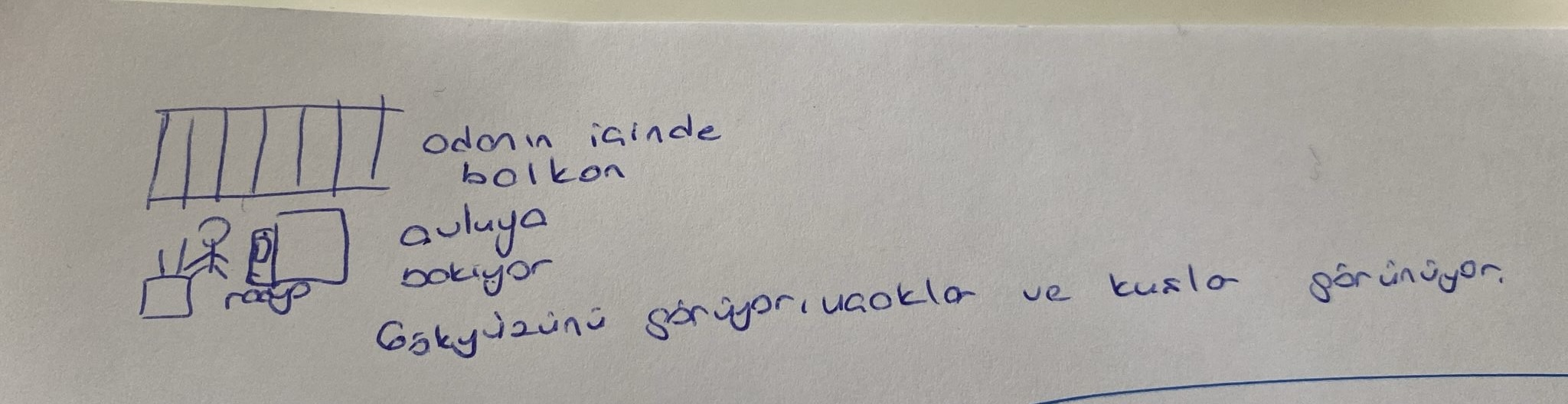 “Odanın içindeki ‘balkon’ avluya bakıyor. Gökyüzü görünüyor. Uçaklar ve kuşlar görünüyor. Ben anladım ki özgürlük böyle bir şeymiş galiba.”