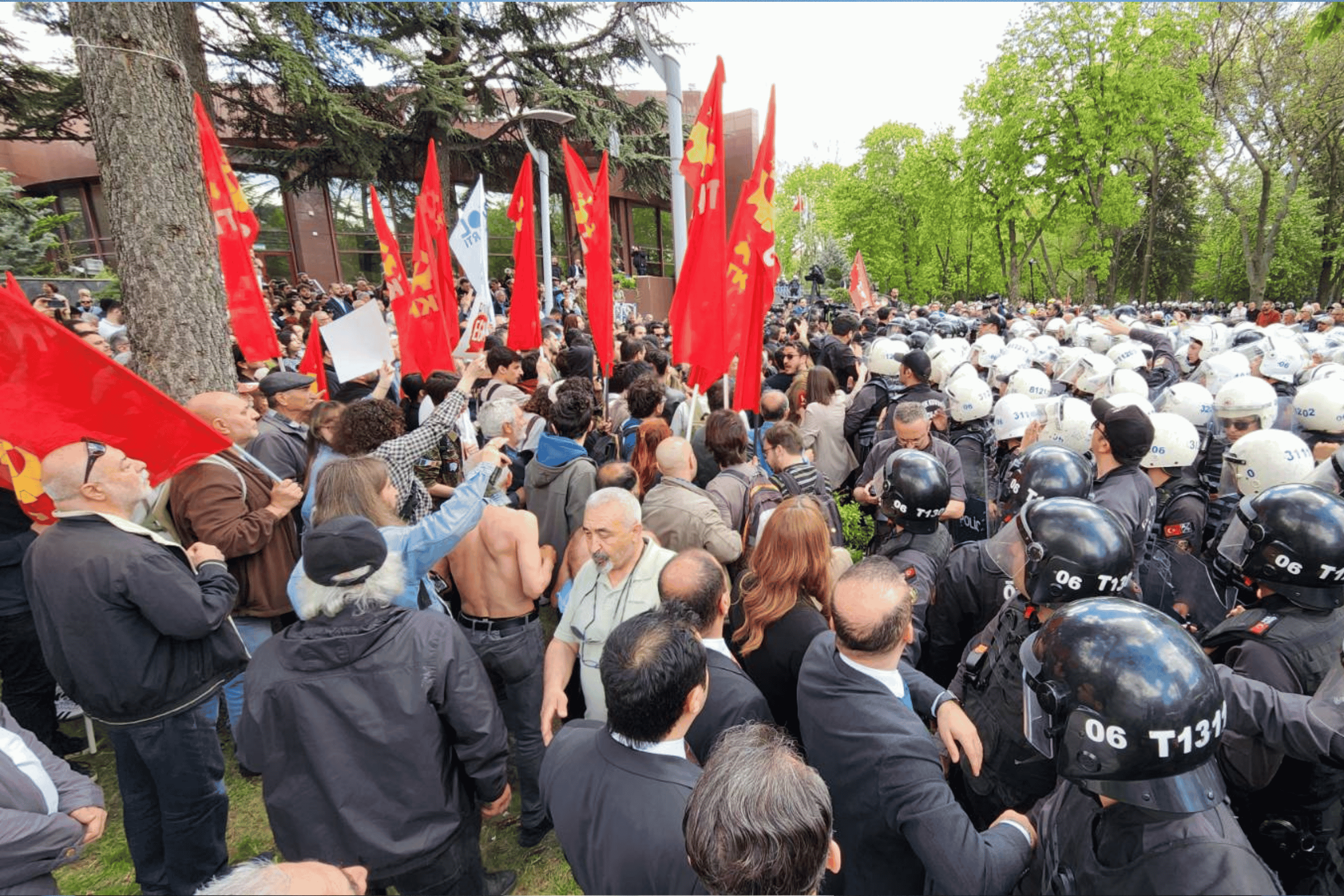 Türkiye Komünist Partisi'nin (TKP) de bulunduğu parkta, yurttaşlar bir ağızdan "Fabrikalar, tarlalar, siyasi iktidar her şey emeğin olacak" diye haykırdı.
