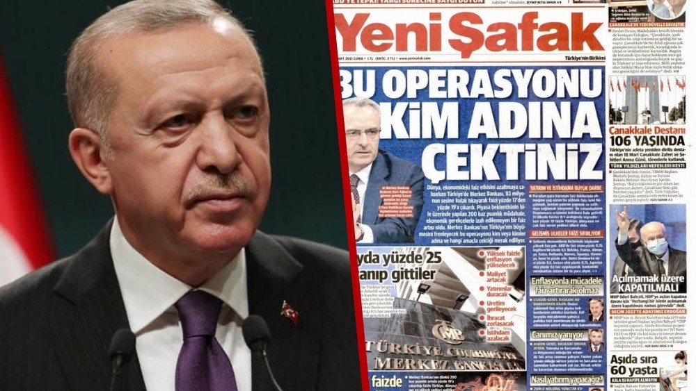 Merkez Bankası'nın faiz artırması durumunda kendisiyle çelişeceğini söyleyen Yeni Şafak, bugünkü manşetinde faizlerin yüzde 19'a çıkarılmasına tepki gösterdi.