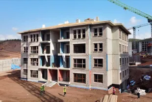Deprem konutlarında iskele çöktü: 4 işçi yaralandı