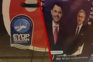 AKP Alibeyköy'de belediyeye ait araçla cami önünde seçim çalışması yapıyor